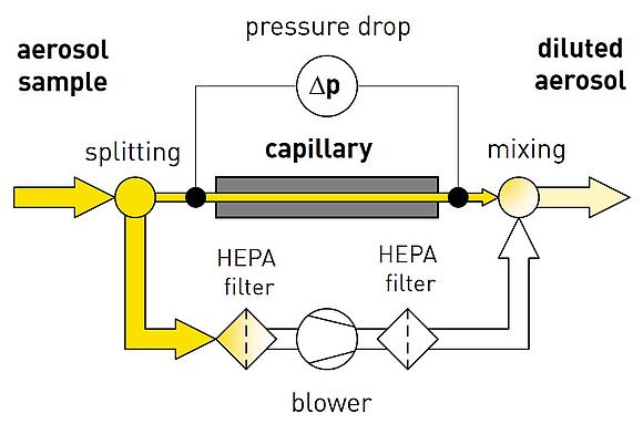 The principle of operation of the VDS 562 is based on the approved dilution principle used by Topas, where the inlet aerosol flow is split at first by a flow resistance (capillary).